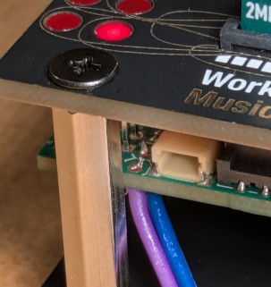 Because the output jacks of the Computer are not designed to generate frequencies much higher than audio, the RF output is generated on one of the debug connections, next to the LEDs on the Computer PCB. A short length of insulated wire connected to this and held next to to the antenna of an AM radio receiver, will, with some tuning, transfer the sound to the radio.